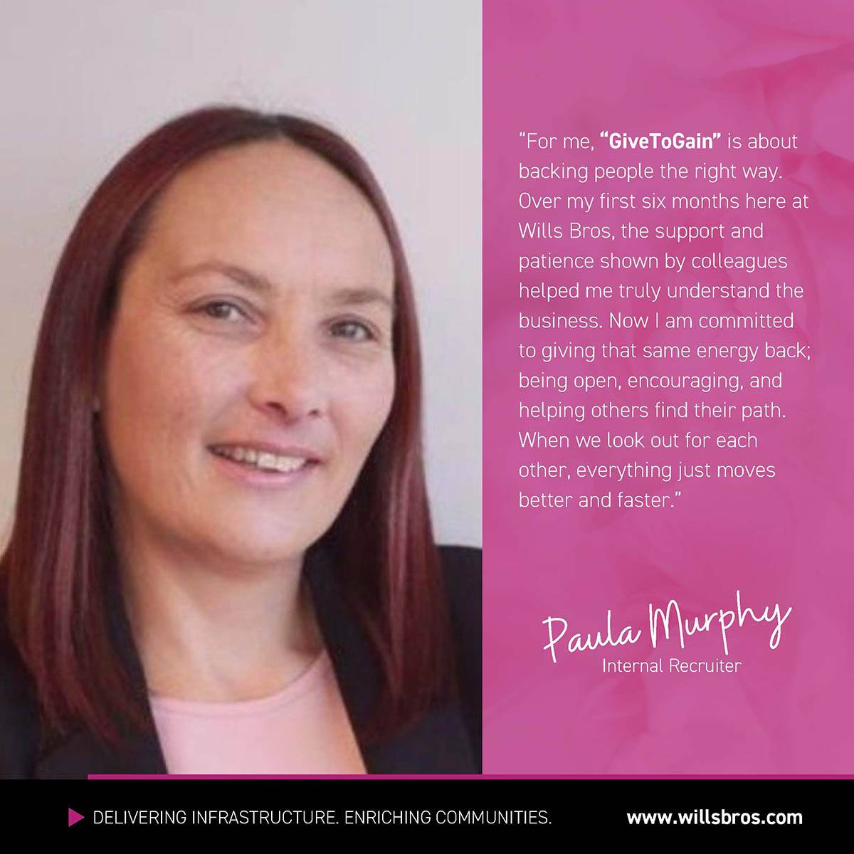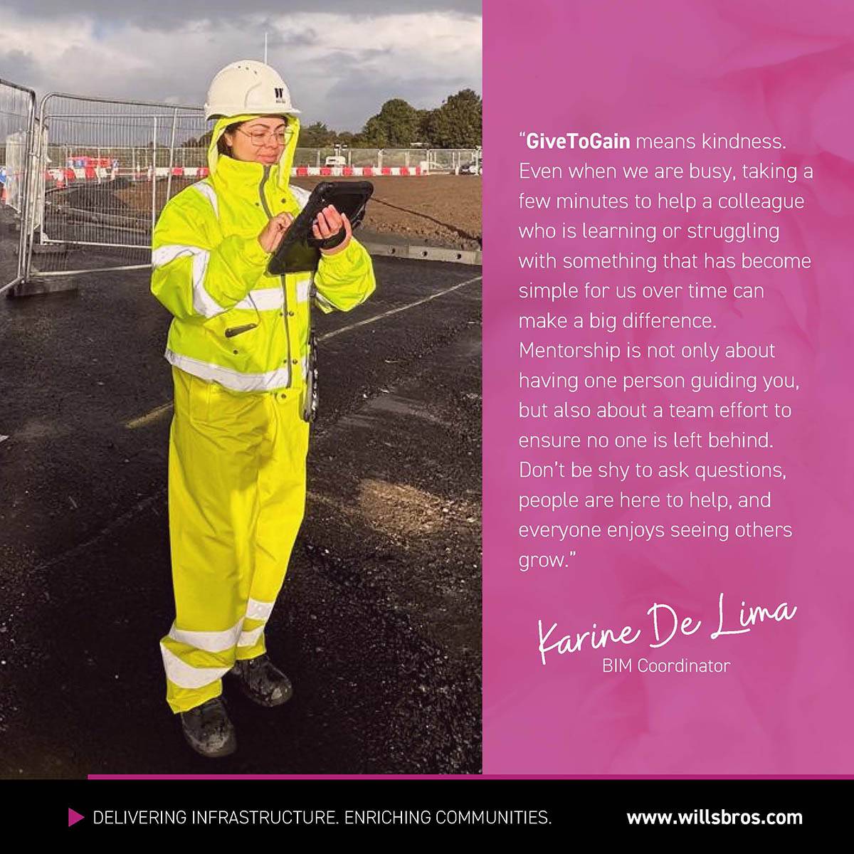 At Wills Bros, women represent 22% of our workforce, almost a quarter of our team compared with an industry average of around 14% across the construction sector (GoConstruct). While there is still progress to be made across the industry, it’s encouraging to see positive change taking place. Across our projects, engineering teams and support functions, talented women are helping to shape the work we deliver and the communities we work in every day.