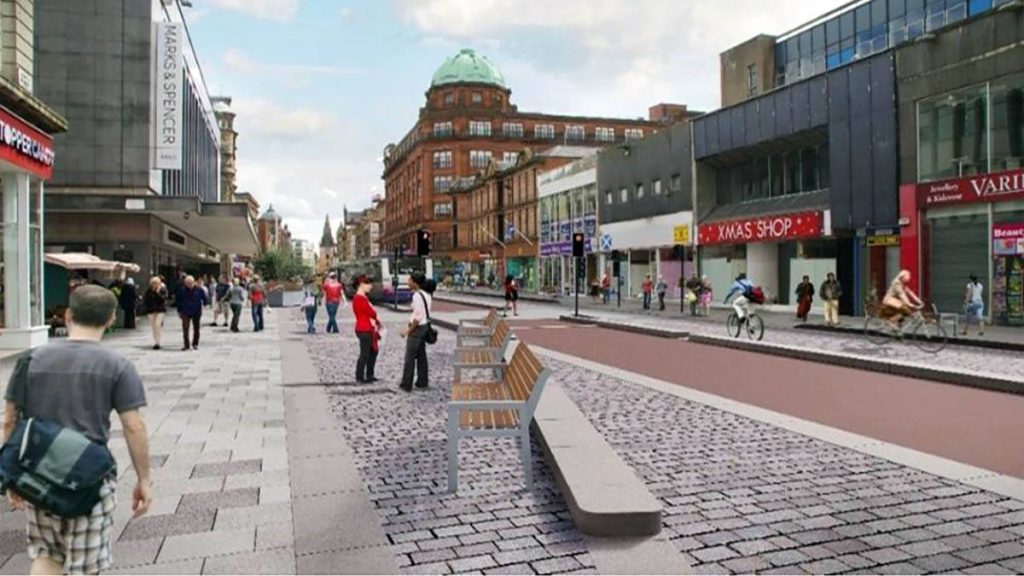 The Argyle Street East Avenue will be delivered in four phases, with the first stretching from the junction with Queen Street to the junction with Stockwell Street, the second phase between the ‘Four Corners’ and Queen Street, and the third and fourth between Stockwell Street, Glasgow Cross and Moir Street.