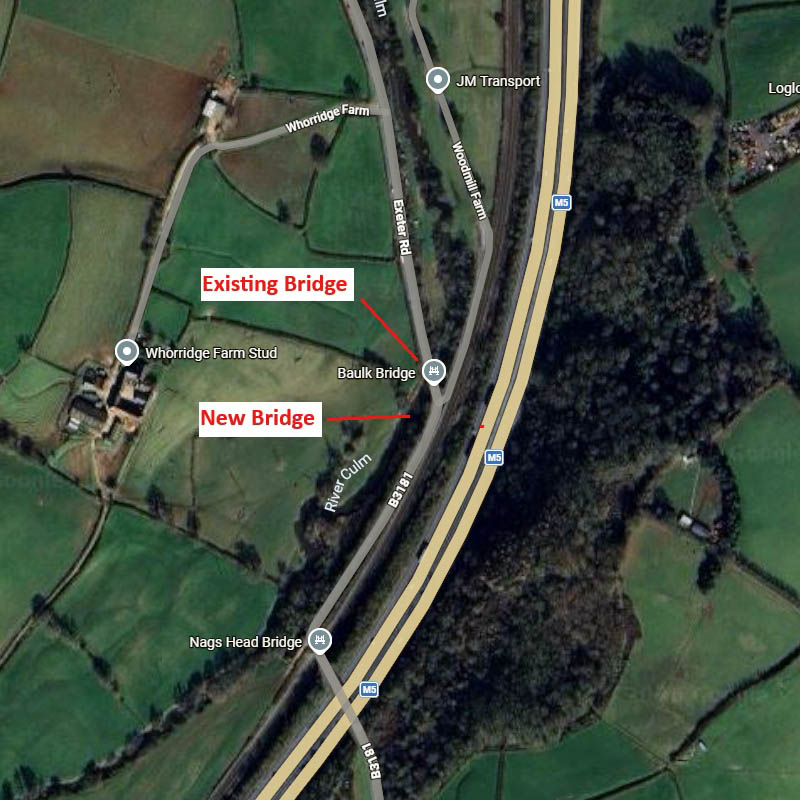 The project involves replacement of the titular bridge across the B3181 for Devon County Council. The existing bridge is in poor condition and is not economical to repair and therefore a new replacement bridge is required, with a 120-year design life. The replacement will be located on a new alignment to allow for the existing road to remain open for a significant time during construction, without the need to severely interrupt traffic flows or to provide a temporary bridge.